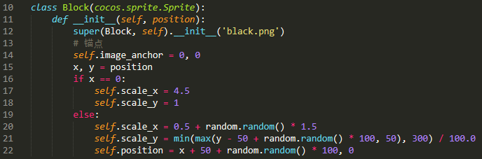 利用cocos2d模块来定义主角类是一件非常轻松的事情。你只需要继承sprites类,然后告诉sprites类需要执行什么操作即可。
