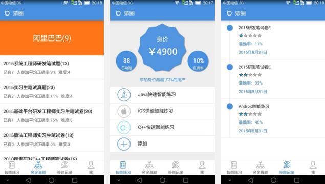猿圈Oxcoder含有大量的海量名企真题,比如说BAT及知名互联网公司历年真题,是专门为程序猿笔试、面试而打造的找工作必备神器。