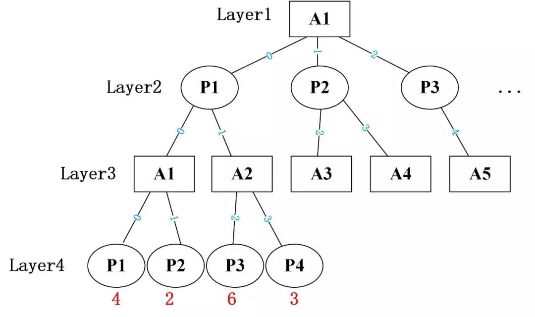 其中A代表AI方,P代表人类方。AI方搜索最大值,人类方搜索最小值。因此Layer3的A1向下搜索的最终结果为4,Layer3的A2向下搜索,先搜索Layer4的P3,获得的分值为6,考虑到Layer2的P1向下搜索时取Layer3的A1和A2中的较小值,而Layer3的A2搜索完Layer4的P3时,其值就已经必大于Layer3的A1了,就没有搜索下去的必要了,因此Layer3到Layer4的路径3就可以剪掉了。
