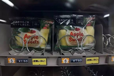 水果切块之后,会立即浸泡在维生素C液体里,这样可以维持11天不腐烂,保证水果的新鲜。当然,家庭少妇们不用大老远跑菜市场,家楼下的贩卖机可能就找到鸡蛋、米和蔬菜。