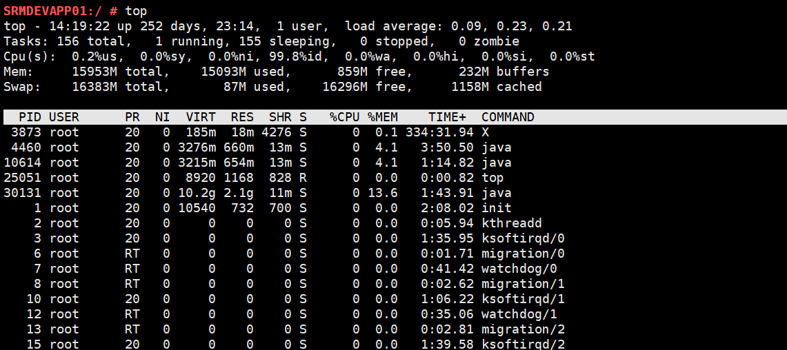 14:19:22 up 252 days, 23:14, 1 user, load average: 0.09, 0.23, 0.21