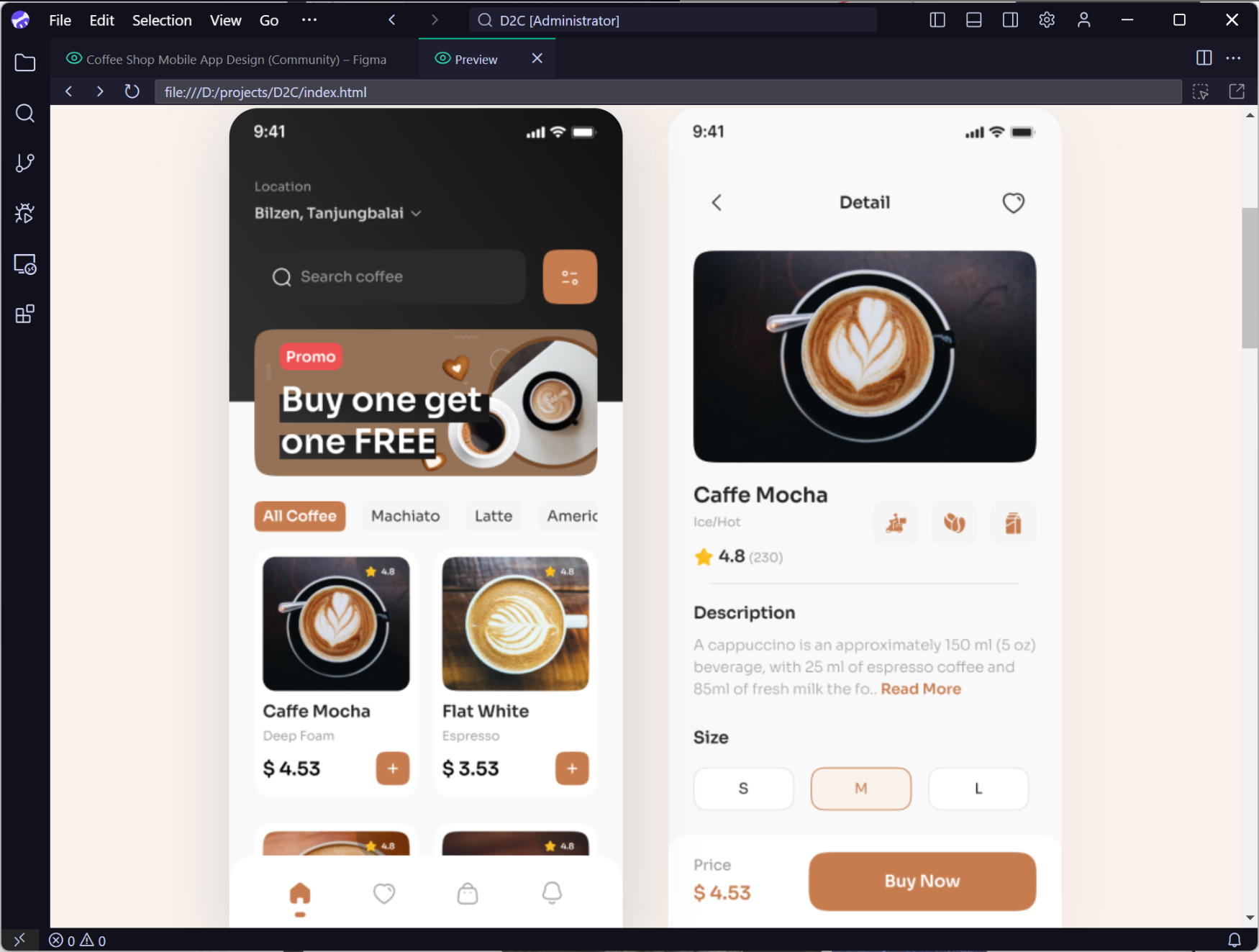 - 将 Figma 设计转换成代码后,Preview 效果如下图所示,可以看到,精确度非常高。
