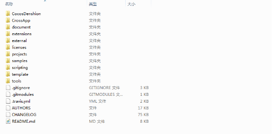 1. 从CrossApp官网http://crossapp.9miao.com/Home/List/index/cid/3.html下载CrossApp的源码,解压至本地计算机。以下是CrossApp解压的目录结构