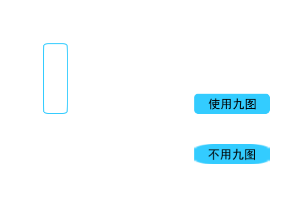 void FirstViewController::viewDidLoad(){ //创建CAScale9ImageView* first9IV = CAScale9ImageView::createWithImage(CAImage::create("source_material/btn_rounded_normal.png"));//设置显示大小(拉伸后的大小)//设置非拉伸区域为(5,5,20,20) first9IV->setCapInsets(DRect(5,5,20,20));this->getView()->addSubview(first9IV);first9IV->setFrame(DRect(100, 100, 50, 140)); //添加渲染 //创建CAImage::create("source_material/btn_rounded_highlighted.png"));CAScale9ImageView* second9IV = CAScale9ImageView::createWithImage( //设置非拉伸区域与顶部的距离 second9IV->setInsetTop(3.0f);second9IV->setInsetLeft(3.0f);//设置非拉伸区域与底部的距离 second9IV->setInsetBottom(3.0f); //设置非拉伸区域与右边的距离 second9IV->setInsetRight(3.0f); //设置非拉伸区域与左边的距离CALabel* image9Label = CALabel::createWithFrame(DRect(400, 200, 150, 40));//设置显示区域(拉伸后的大小)second9IV->setFrame(DRect(400, 200, 150, 40));//添加渲染 this->getView()->addSubview(second9IV);this->getView()->addSubview(image9Label);//创建 image9Label->setText(UTF8("使用九图"));image9Label->setTextAlignment(CATextAlignmentCenter);image9Label->setVerticalTextAlignmet(CAVerticalTextAlignmentCenter);imageView->setImage(CAImage::create("source_material/btn_rounded_highlighted.png"));//不使用9宫格拉伸 设置大小与上同 CAImageView* imageView = CAImageView::createWithFrame(DRect(400, 300, 150, 40)); //设置显示图片 //添加渲染 this->getView()->addSubview(imageView); //创建imageLabel->setVerticalTextAlignmet(CAVerticalTextAlignmentCenter);CALabel* imageLabel = CALabel::createWithFrame(DRect(400, 300, 150, 40)); imageLabel->setText(UTF8("不用九图")); imageLabel->setTextAlignment(CATextAlignmentCenter); this->getView()->addSubview(imageLabel);}