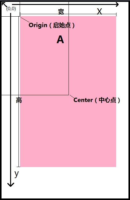解释:view的中心点在屏幕上的位置,CrossApp采用的坐标系是屏幕坐标系,即左上角为原点,向右和向下分别对应X和Y轴。在CrossApp中我们确定一个view的位置,是通过origin和size来设定的,为了方便,这里可以直接使用Center将view的中心点设置在我们想要的位置。如果只想改变view的坐标,不需要改变view的大小,则可采用setFrameOrigin方法来进行设置,get/set{}。