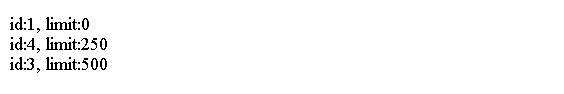 return "id:" + id + ", limit:" + limit;