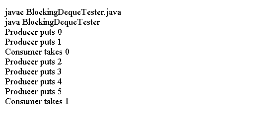 BlockingDeque<Integer> deque = new LinkedBlockingDeque<Integer>(5);