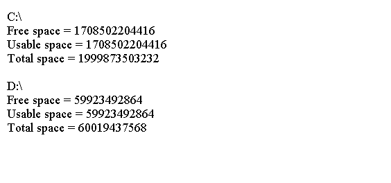 System.out.println("Free space = " + roots[i].getFreeSpace());