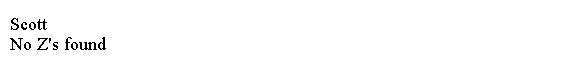 System.out.println("No Z's found");