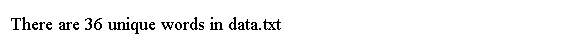 System.out.println("There are " + uniqueWords + " unique words in data.txt");