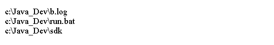 import java.nio.file.Files; import java.nio.file.Paths; public class Main { public static void main(String[] args) throws Exception{ Files .list(Paths.get("c:/Java_Dev")) .sorted() .forEach(System.out::println); } }