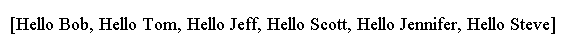List<String> greetings = _names.stream().map(name -> "Hello " + name)