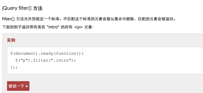 实例请点击——jQuery filter() 方法-实例