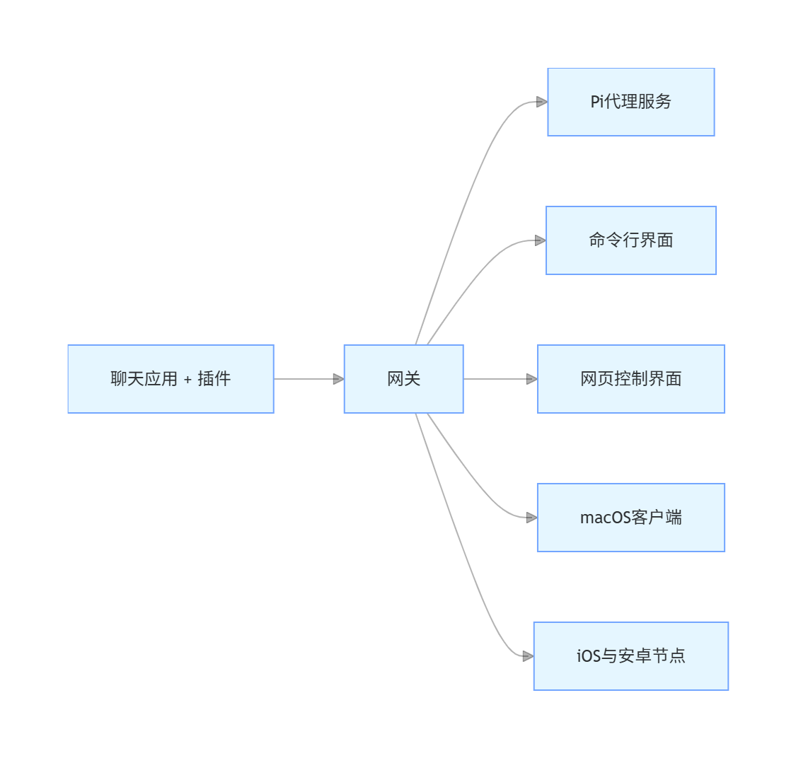 OpenClaw 通过单个 Gateway 网关进程将聊天应用连接到 Pi 等编程智能体。它为 OpenClaw 助手提供支持,并支持本地或远程部署。