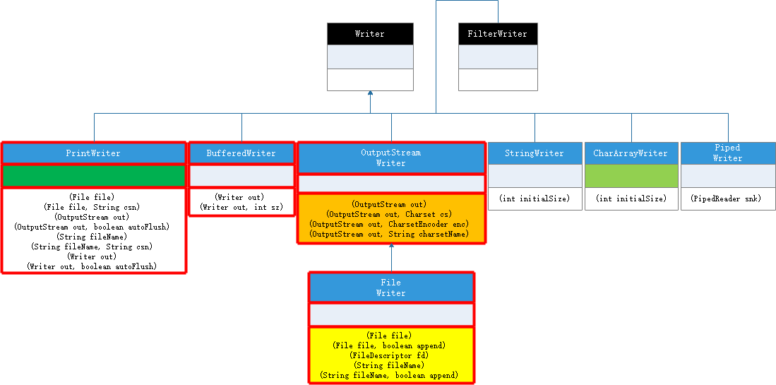 翠绿色:除淡蓝色功能以外还可以将缓冲区的内容写入另一个字符流。(writeTo(OutputStream out))